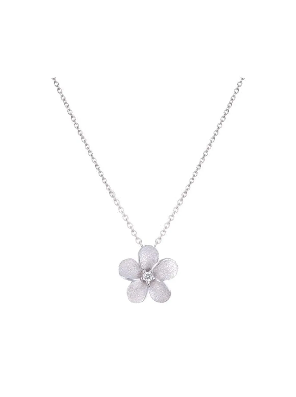 This is a 14k gold plumeria slide by Denny Wong. It features one 0.02 carats diamond with a sand blast finish.This is a slide pendant meaning it can slide throughout the entire chain.