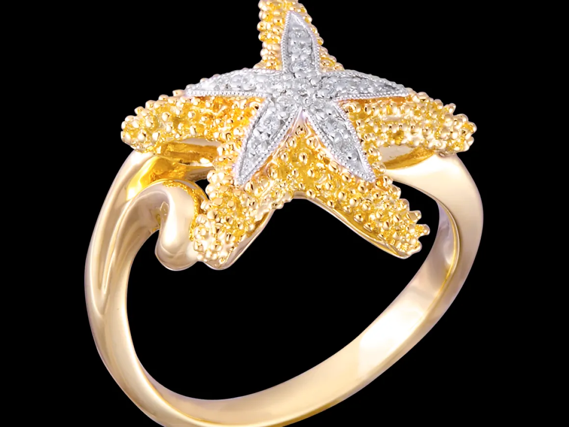 This is an ocean-inspired14k16mmstarfish ringfinely handcrafted by Denny Wong featuringeleven diamonds.
