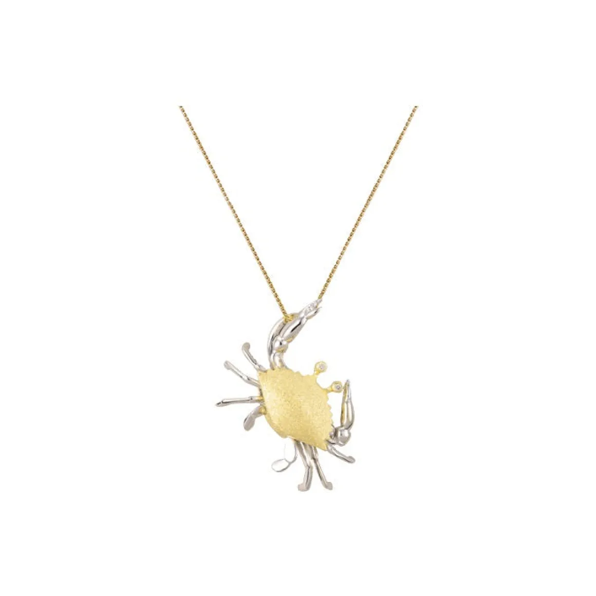 14k 2/tone 18mm crab pendant w/ 2 dia. T/w .02ct. (y/g shell, w/g legs)