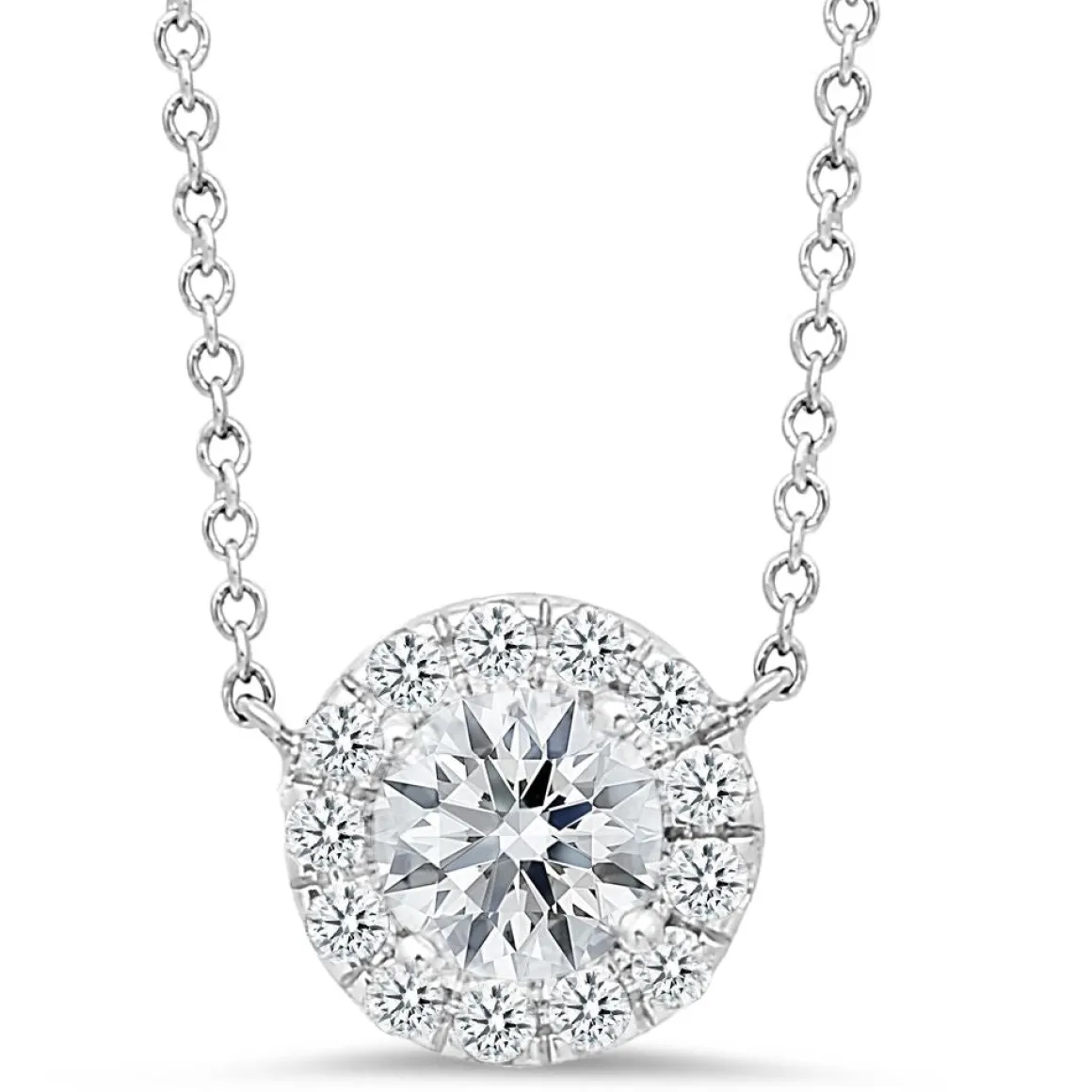 18K white gold pendant with 0.15ct round brilliant cut diamonds and .45ct round brilliant cut diamond center