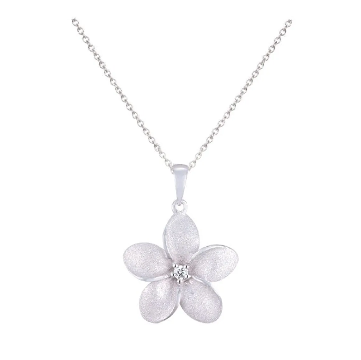 This is a 14k 18mmsandblasted with bail gold plumeria pendant by Denny Wong. It features one 0.05 carats diamond.