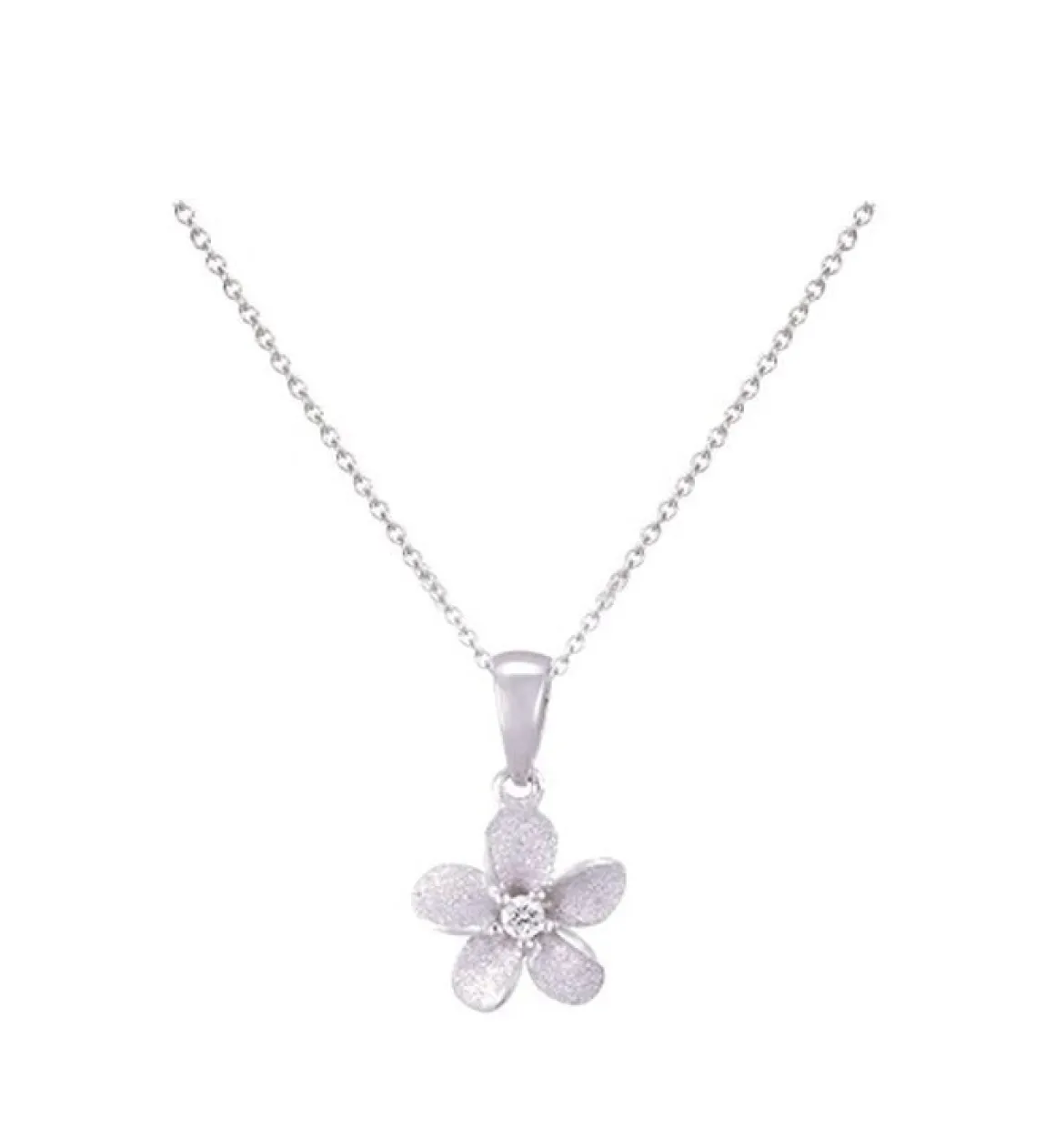This is a 14k 8mm sandblasted gold plumeria pendant by Denny Wong. It features one 0.02 carats diamond.