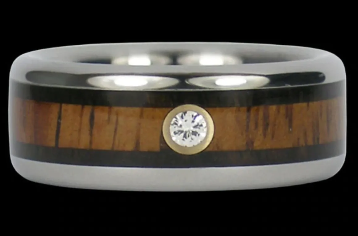 A beautiful blend of dark color and texture with a rugged but elegant look. Upgrade and customize this design with a diamond set in 14k gold. Durability and comfort has never looked so good. Finally, a ring men love to wear!