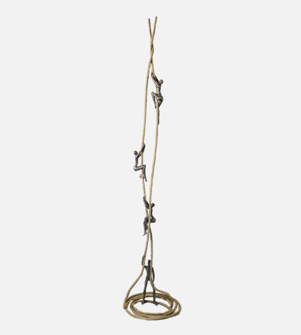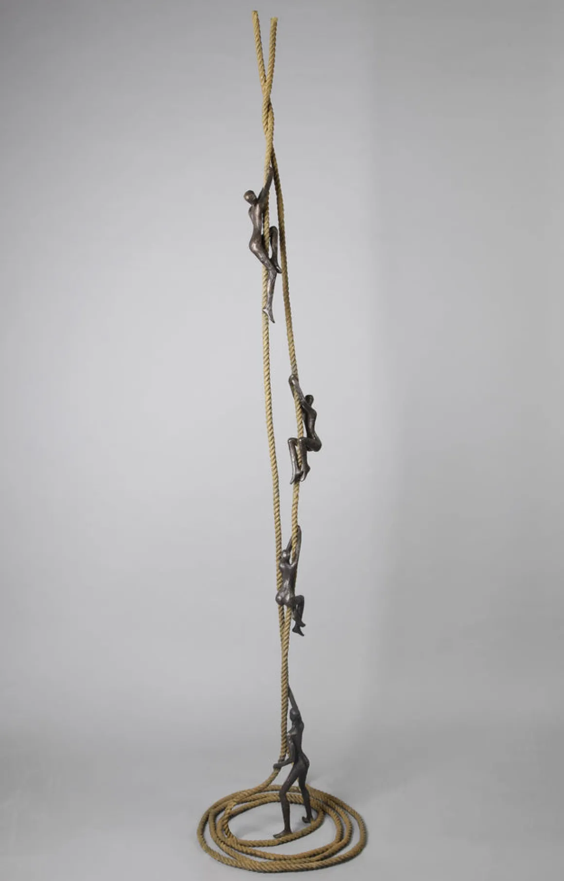 Tolla Inbar’s expanded design creates a more complex visual rhythm while maintaining the elegant simplicity of a single rope. The coiled base grounds the composition while the four figures create a sense of ongoing motion, suggesting that aspiration is not a moment but a continuous stream of human reaching.
