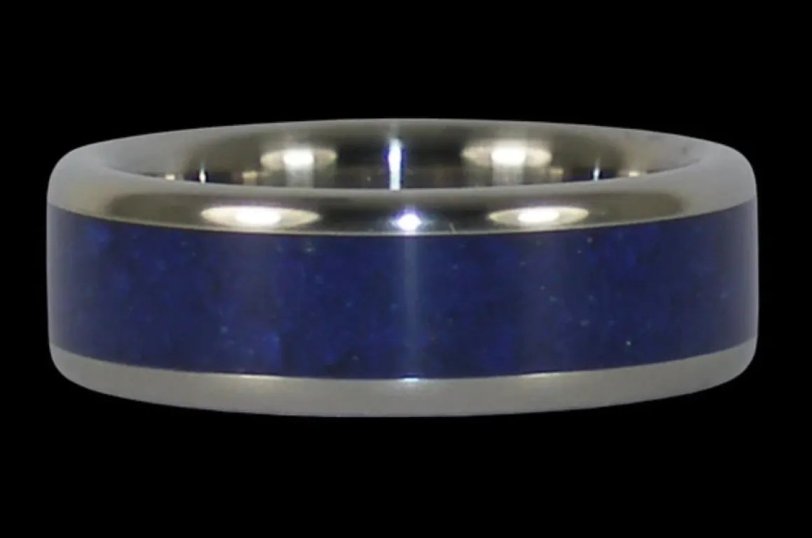 Indigo Blue Lapis Titanium Ring; perfect anniversary gift for your husband or wife. Lapis Lazuli has been mined since the beginning of time, it is valued for its history and antiquity as much as it is prized for its intense blue color.In ancient times, Lapis was carved into sacred symbols and crushed for Cleopatra’s eyeshadow. Today, it is used to make fine inlay jewelry and is the nine year wedding anniversary gemstone.