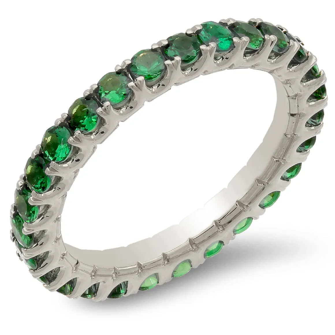 18k Yellow, White, or Rose Gold eternity band, with 1.50 carats emeralds
