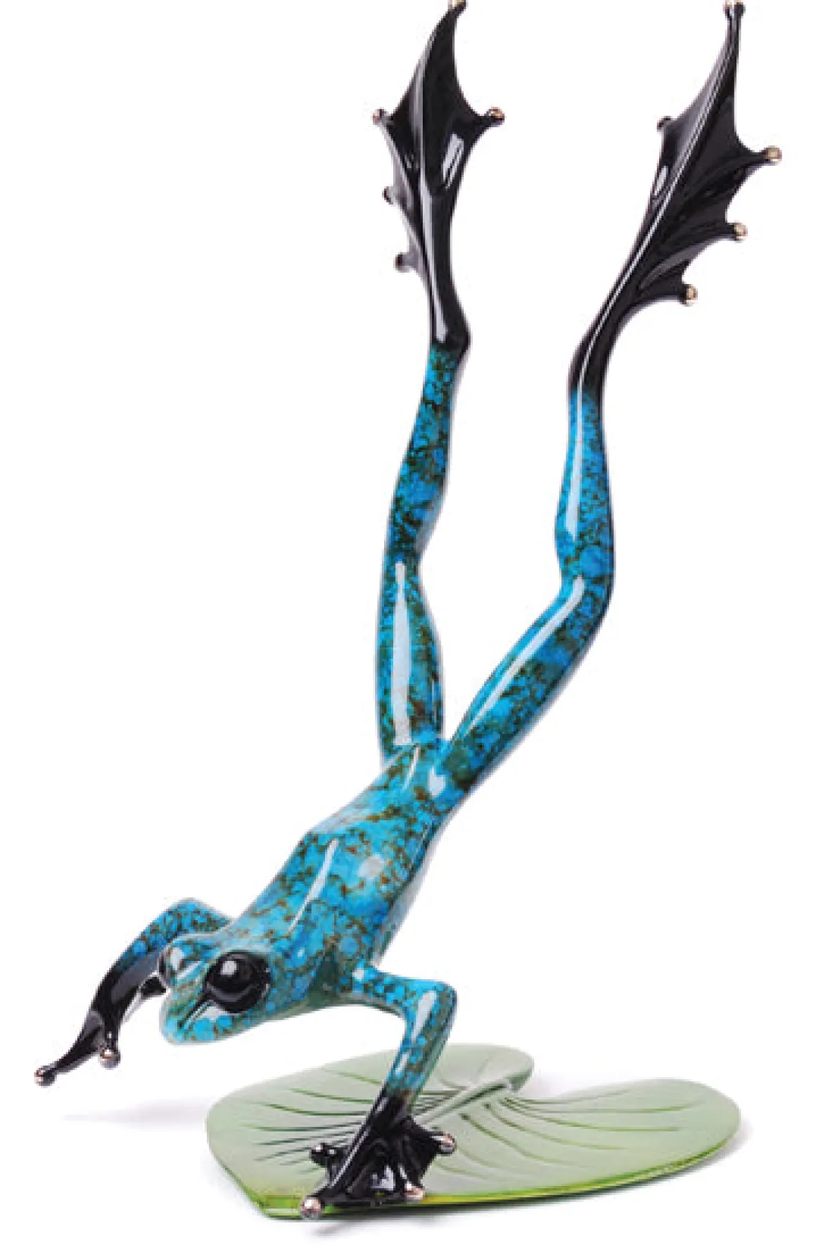 Now for sale online at Dolphin Galleries! The Flair is a fun frog caught in the act of diving into his favorite pond.