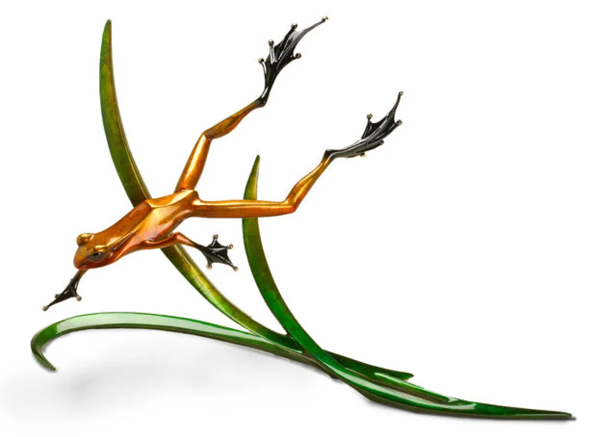 Now for sale online at Dolphin Galleries! The Free Spirit.Suspended in mid-air while diving into the water, this elegant frog has wonderful movement and flowing lines.
