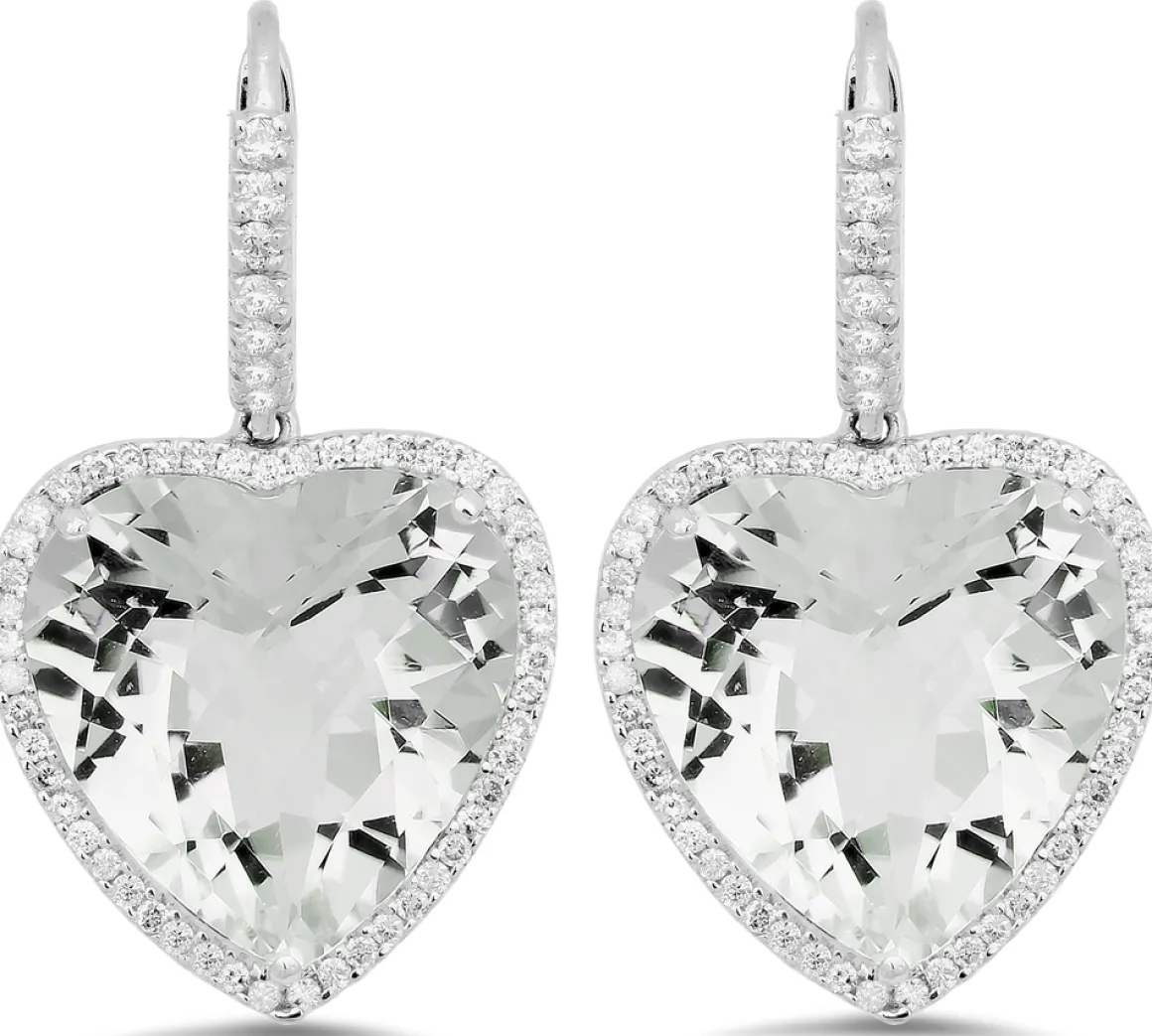 18K white gold earrings with 0.60 carat round brilliant diamonds and 24.00 carat center amethyst.