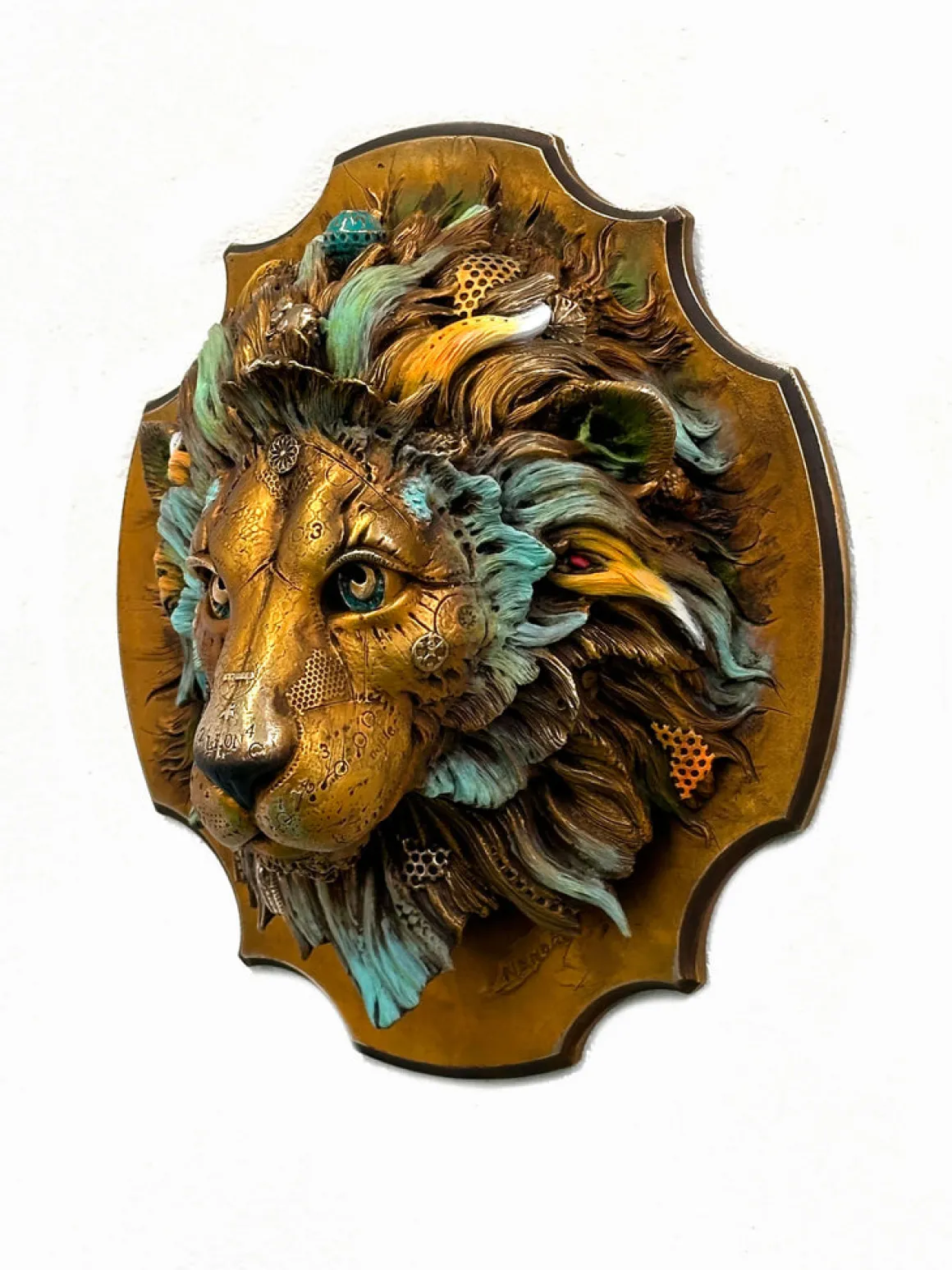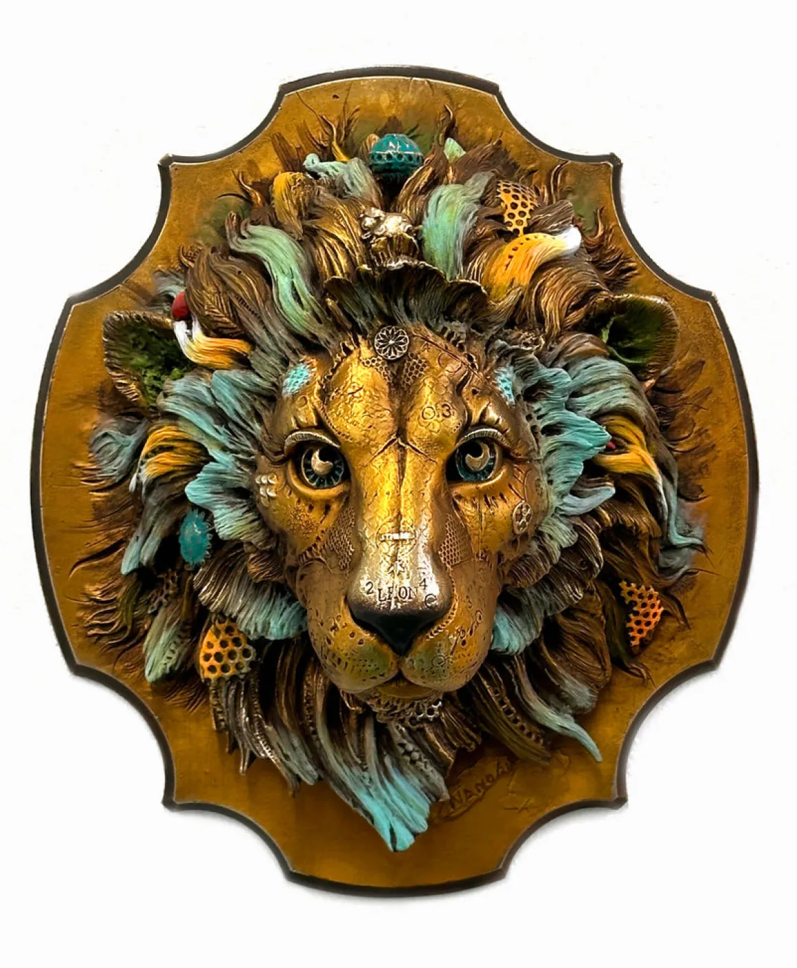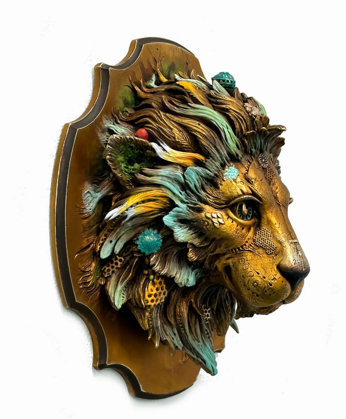 Leonardo Bust Large presents the majestic Leonardo lion’s portrait at an impressive larger scale. This commanding bust focuses on Leonardo’s noble head and flowing mane, every detail magnified to breathtaking effect. The rich bronze patinas and colorful accents characteristic of Nano Lopez’s work bring warmth and life to the king of beasts. This larger format makes a powerful statement in living rooms, offices, or entryways.