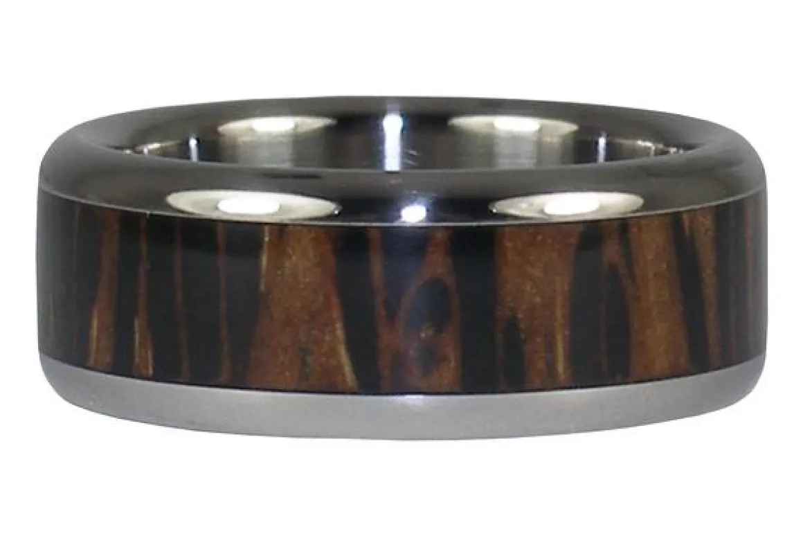 Men and Women’s Titanium Ring, customization available with a Diamond inlay for your engagement ring, wedding band, or anniversary gift. Palm Wood is one of Hawaii Titanium Rings most exotic looking wood inlays; perfect to celebrate your wild side even in the tamest environment.