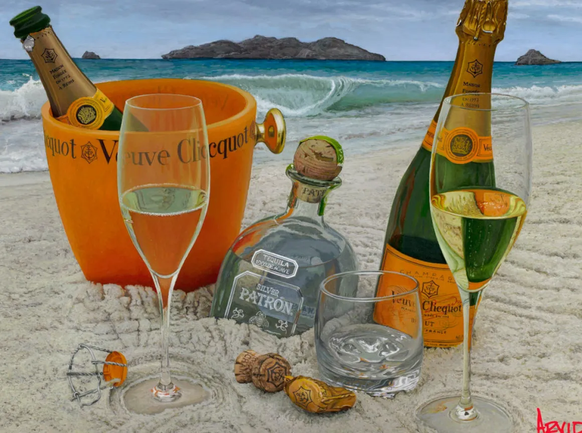 Drawing inspiration from some of his favorite destinations, Thomas Arvid brings us to a place we all know and love: “Somewhere on a Beach.” Arvid recounts that he conceptualized the painting in the Exumas, one of his favorite destinations. But he used the soft white sand of the Florida Panhandle for the beach, and inspired by his home-away-from home, he painted the blue water and sherbet skies of Maui. By incorporating the best of his favorite beaches, Arvid brings us a composition that is immediately familiar, and we can feel the stress melt away because there is literally nothing better than being “Somewhere on a Beach.”