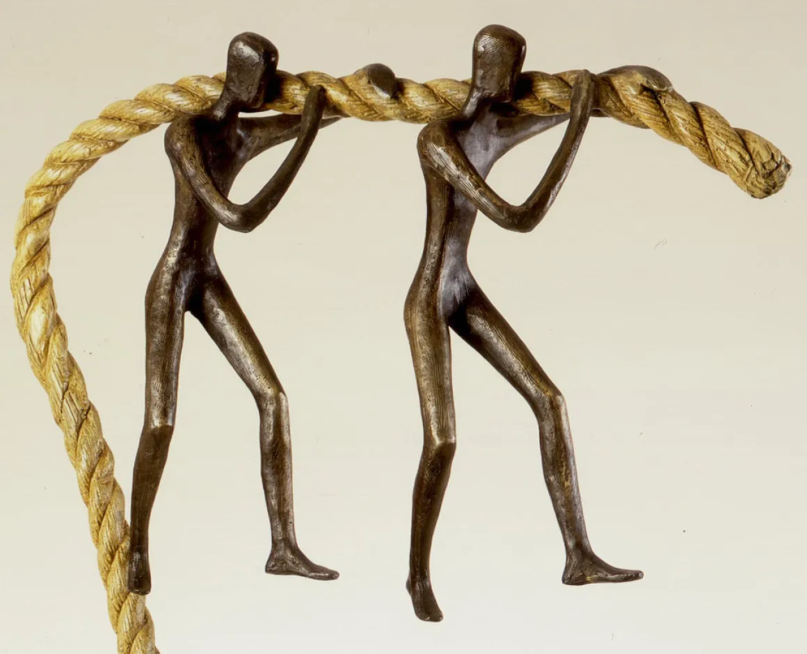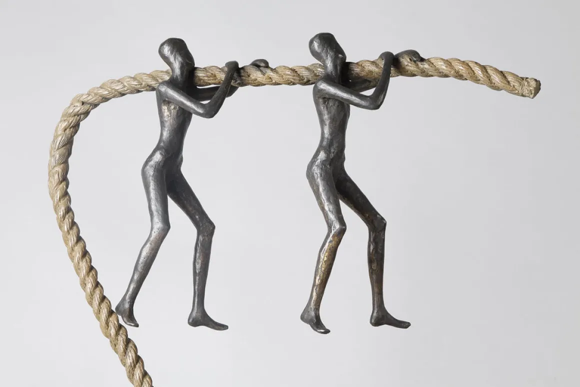This sculpture speaks to the invisible burdens we all bear: responsibility, grief, doubt, history. These figures don’t struggle alone. They have found each other, aligned their steps, and distributed the weight between them. Neither could carry it solo, but together, they move forward.