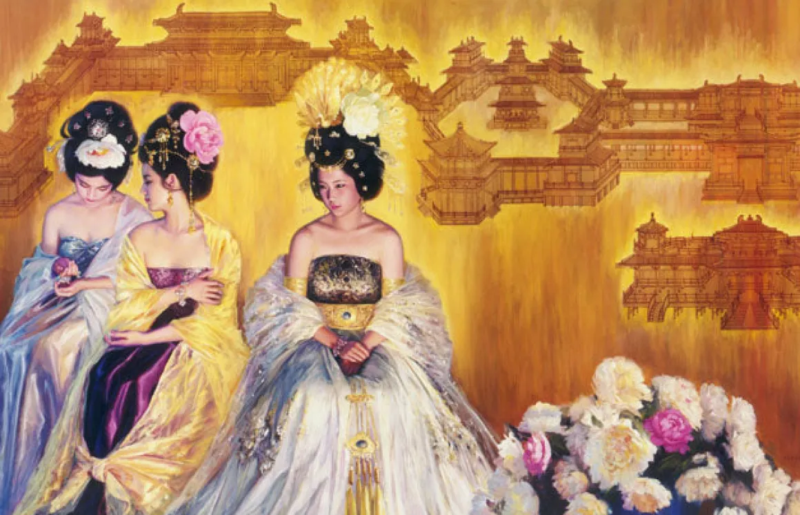 Jia Lu’s painting Tang Dynasty a 27″ × 42″, 40″ × 60″ giclee on canvas. This is a limited edition reproduction. The item will be shipped inside of a tube.