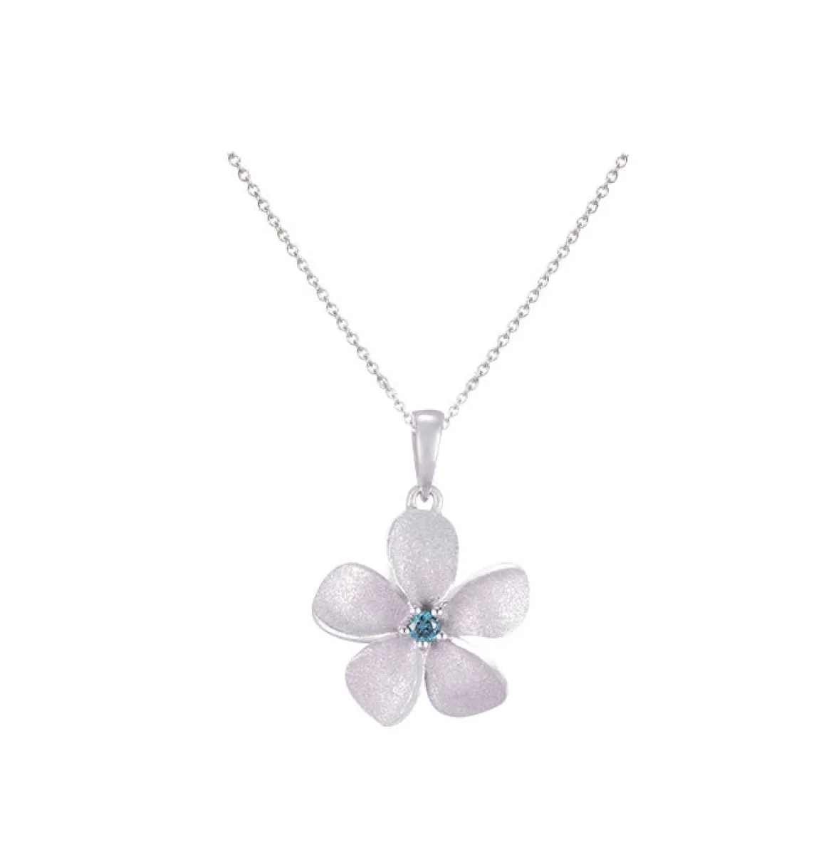 This is a 14k gold plumeria pendant by Denny Wong. It features one 0.02 carats diamond with a sand blast finish.