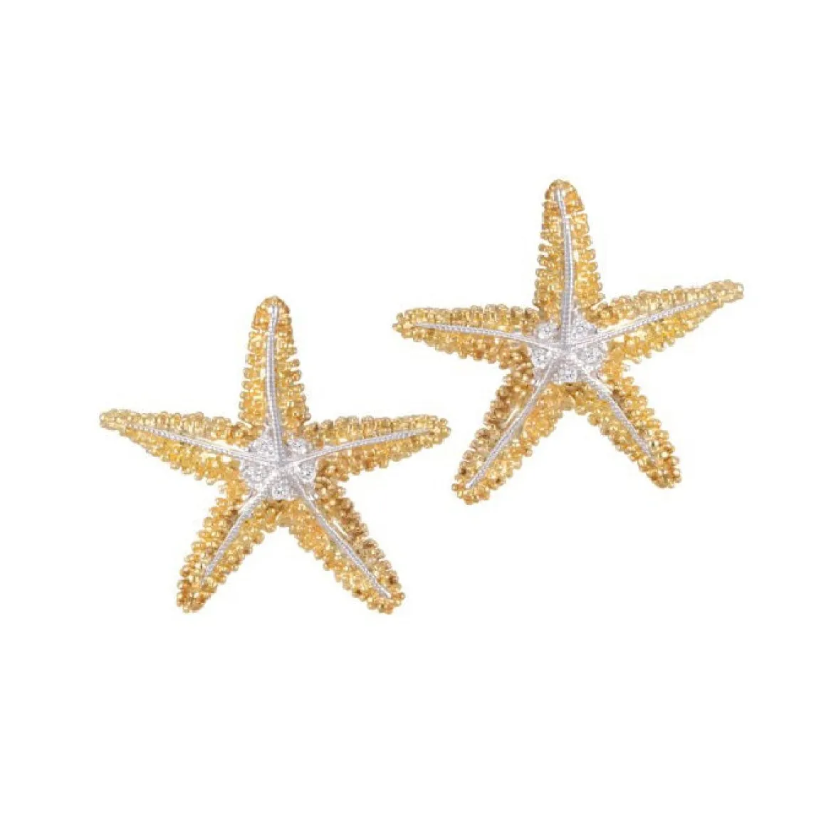 This is an ocean-inspired14k 21mm starfishearringfinely handcrafted by Denny Wong featuring ten glittering diamonds.