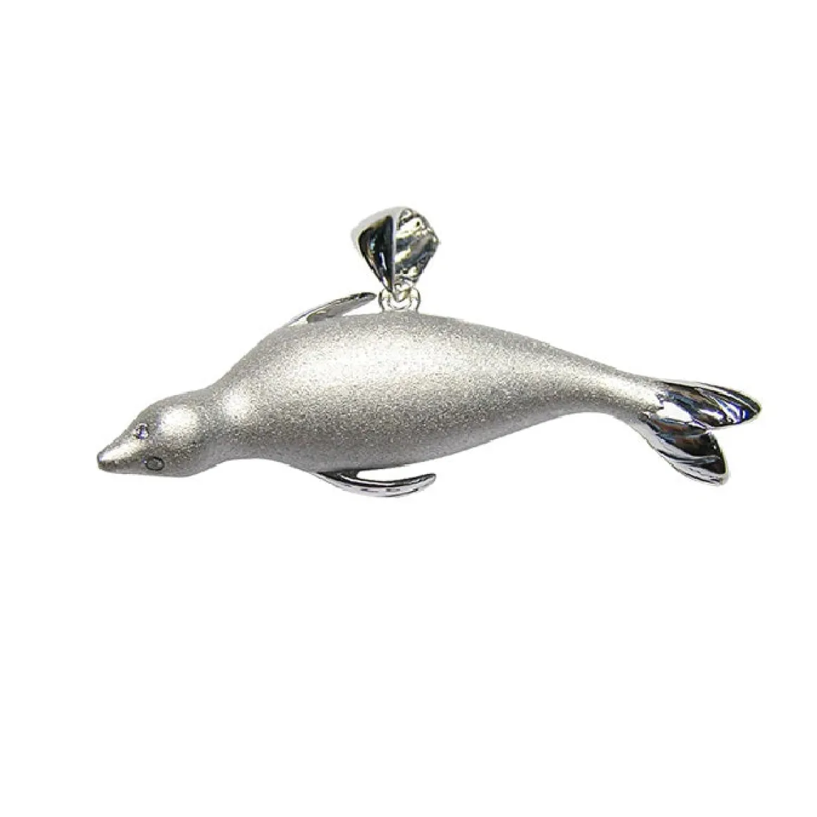 This is a 14k white 40mm seal “searching” pendant by Denny Wong. This pendant is made from solid gold with two diamonds totaling in 0.02 carat.