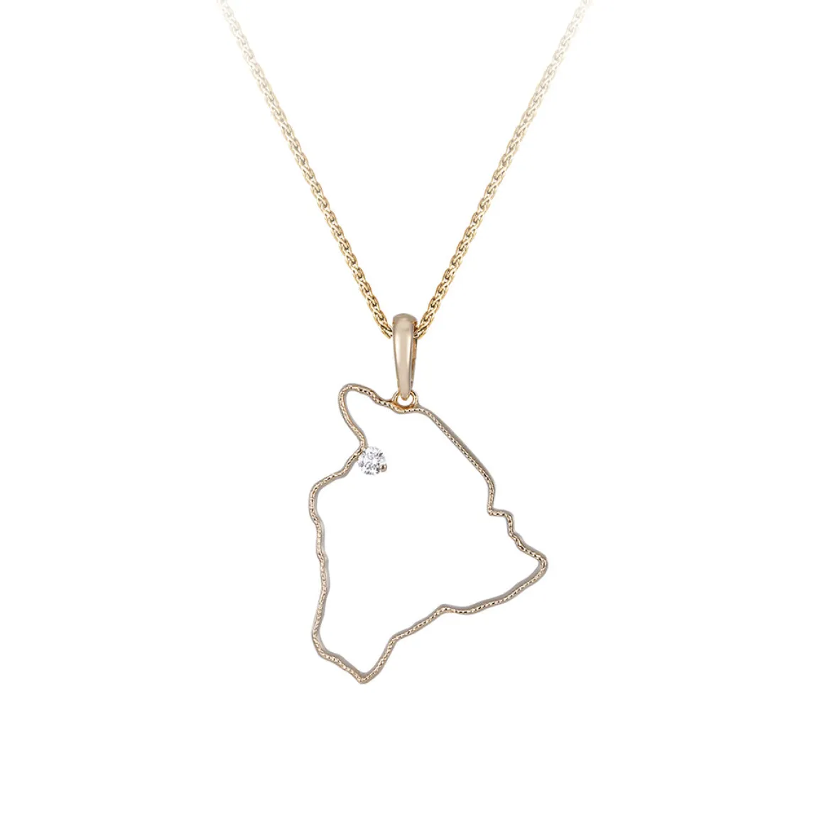 Denny Wong did a great job creating thisbig island pendant (for WAIKOLOA). This is made from 14k yellow gold withdiamonds totaling0.03 carats. Get yours today!