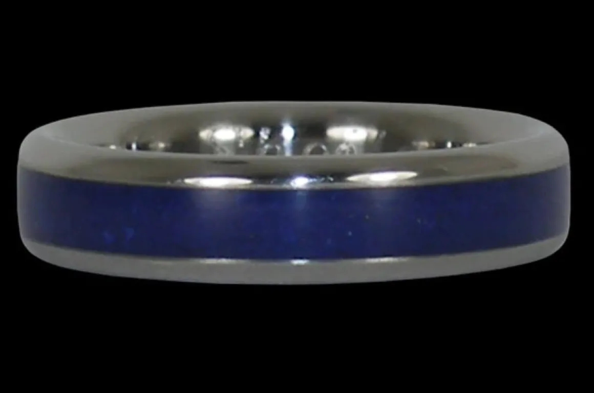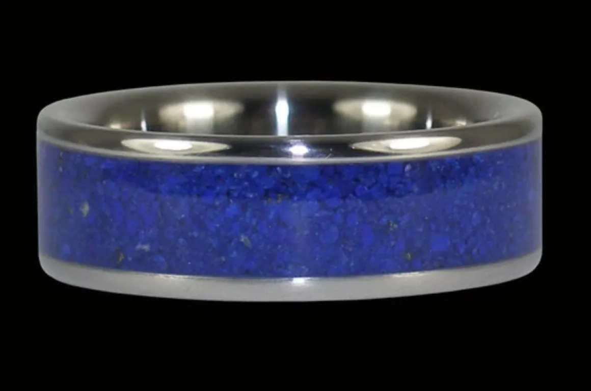 Indigo Blue Lapis Titanium Ring; perfect anniversary gift for your husband or wife. Lapis Lazuli has been mined since the beginning of time, it is valued for its history and antiquity as much as it is prized for its intense blue color.In ancient times, Lapis was carved into sacred symbols and crushed for Cleopatra’s eyeshadow. Today, it is used to make fine inlay jewelry and is the nine year wedding anniversary gemstone.