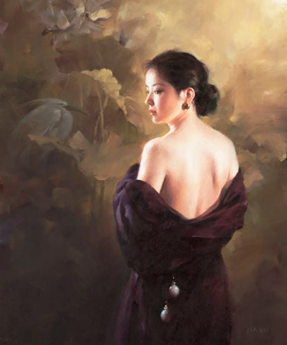 Jia Lu’s painting Eleganceis a 24″ × 20″ giclee on canvas. This is a limited edition reproduction. The item will be shipped inside of a tube.