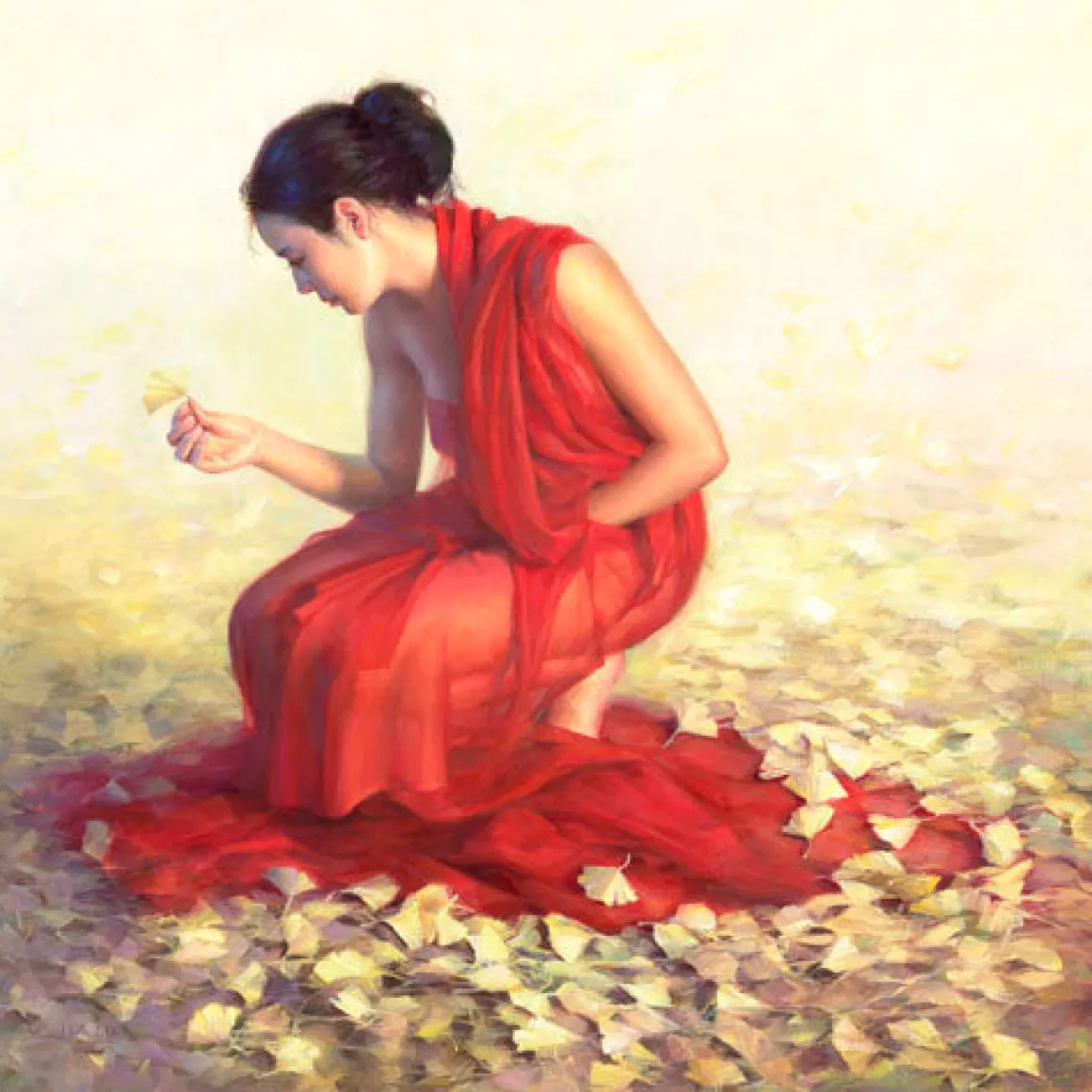Jia Lu’s painting Ginkoa 32″ × 32″ giclee on canvas. This is a limited edition reproduction. The item will be shipped inside of a tube.