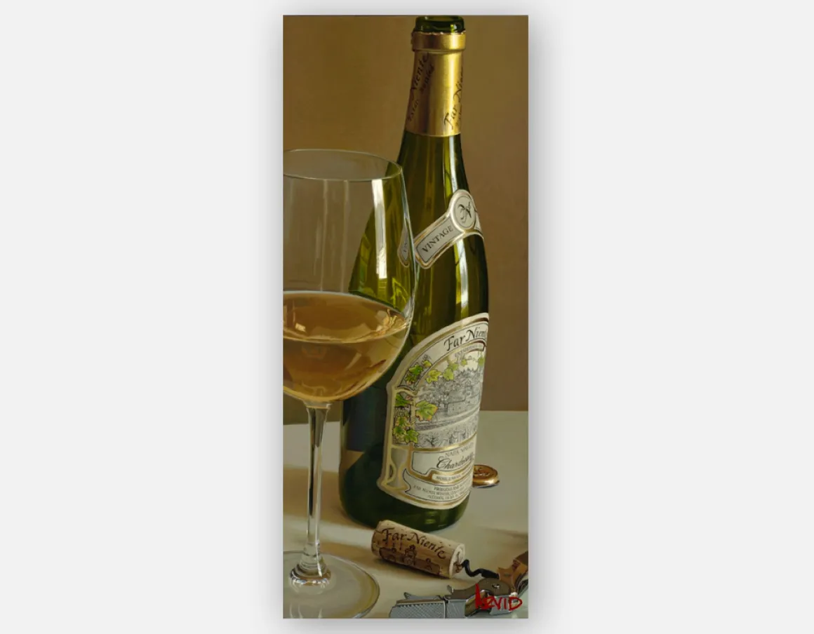 “Gold Standard” captures a moment of carefree indulgence befitting the Italian phrase of its inspiration, Far Niente or without a care. Reminiscent of a bygone era, the dulcet tones of the finely crafted bottle of chardonnay, a single glass and the pulled cork draw us into an unforgettable evening well underway.