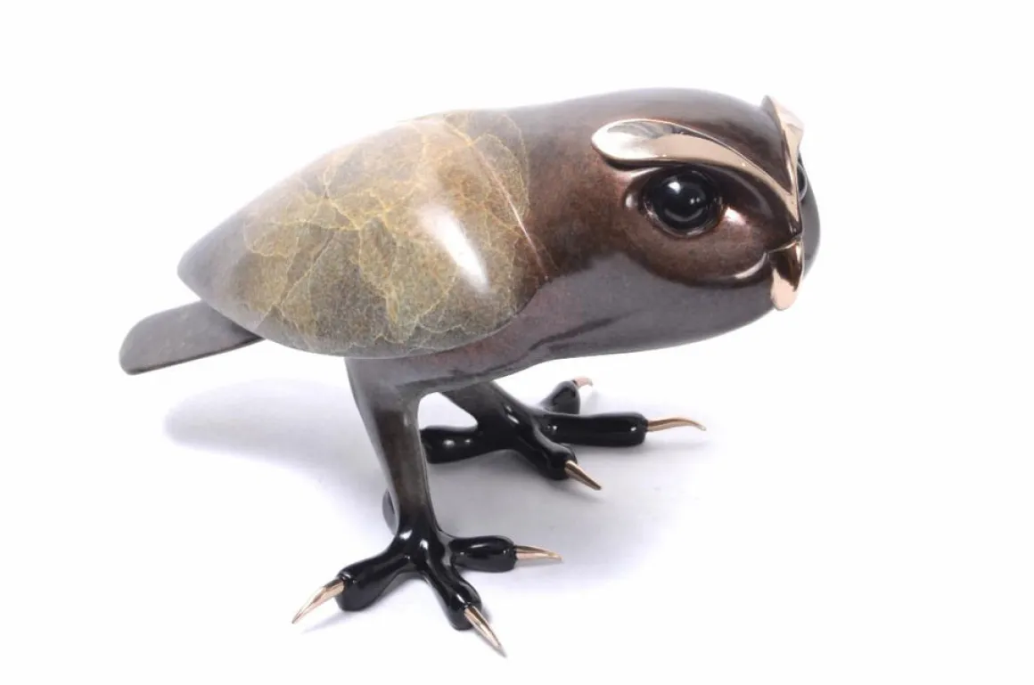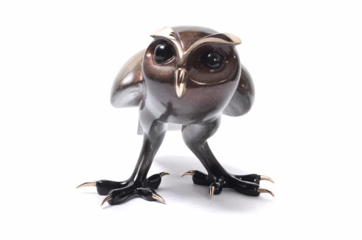 Now for sale online at Dolphin Galleries! The Hamilton. Hamilton, Tim Cotterill’s thirteenth owl sculpture, is a most welcome and complementary addition to the Parliament. The rich mahogany hues of the head and body transition seamlessly to the tawny-toned, feathery wings. A high polished, furrowed brow further enhances this dramatic use of patina-ensuring Hamilton’s position in the iconic Cotterill Parliament.