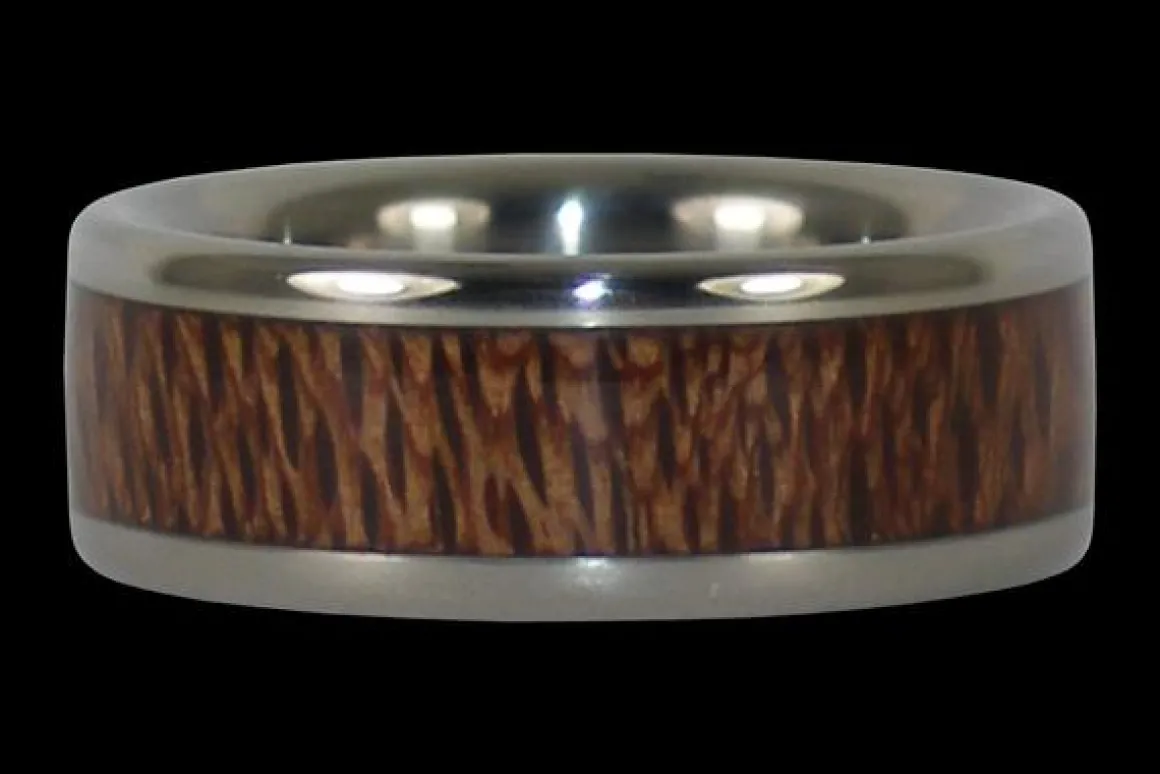 Mac Nut titanium ring; beautiful Hawaiian wedding band. There are only two species of Mac Nut Trees which produce edible nuts that are not poisonous, but every species of the Mac Nut Tree has the same gorgeous wood.