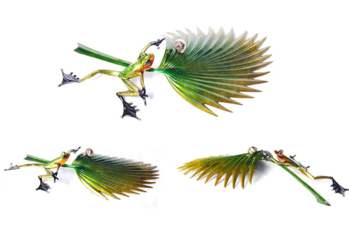 Now for sale online at Dolphin Galleries! The Midas Touch.Beautiful palm frond with a multi colored frog.