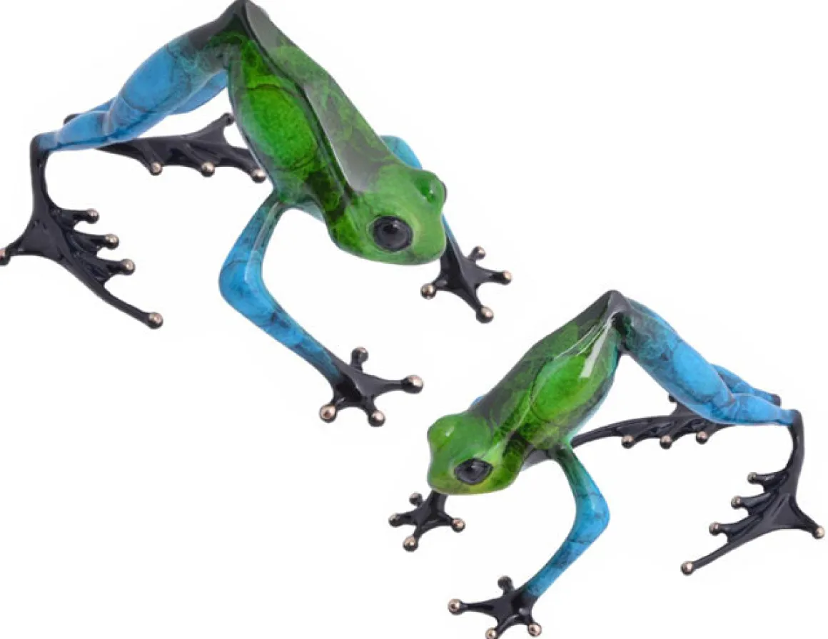Now for sale online at Dolphin Galleries! The Namaste.This most spiritual form is enhanced by a randomly patterned ocean blue and fern green pastel patina. Greetings, Namaste – welcome to the pond!