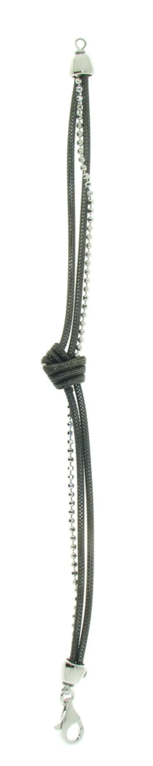 Now for sale online at Dolphin Galleries! The Sterling Silver Gray Mesh Beaded Double Love Knot Bracelet.