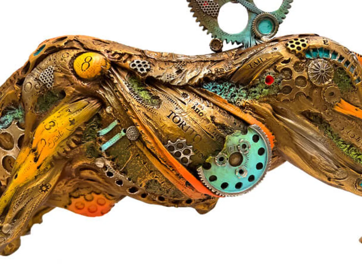 About the Artist: Nano Lopez is a Colombian-born sculptor renowned for his whimsical bronze creatures covered in intricate symbols, mechanical elements, and personal narratives. His unique “Nanimals” have earned international acclaim for their ability to spark joy and conversation.