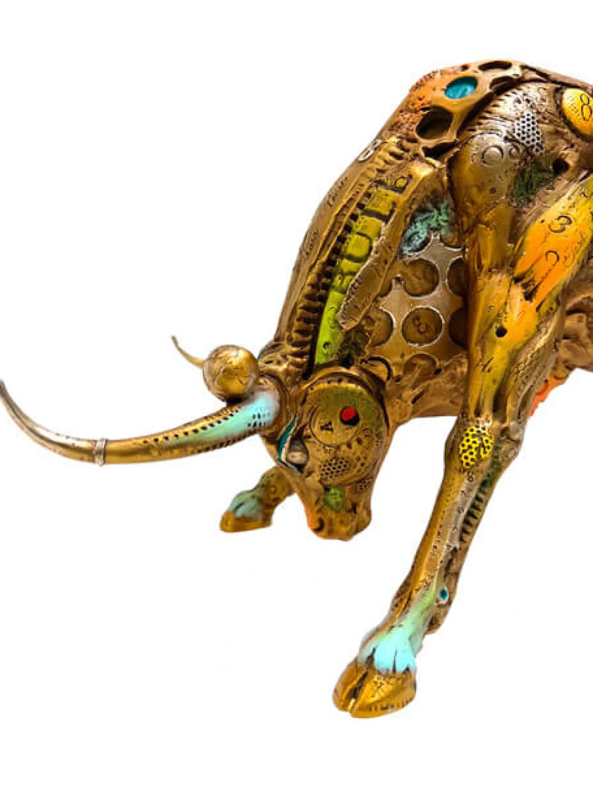 Perfect for: Bull enthusiasts, steampunk collectors, and those seeking dynamic, energetic sculpture with mechanical flair.