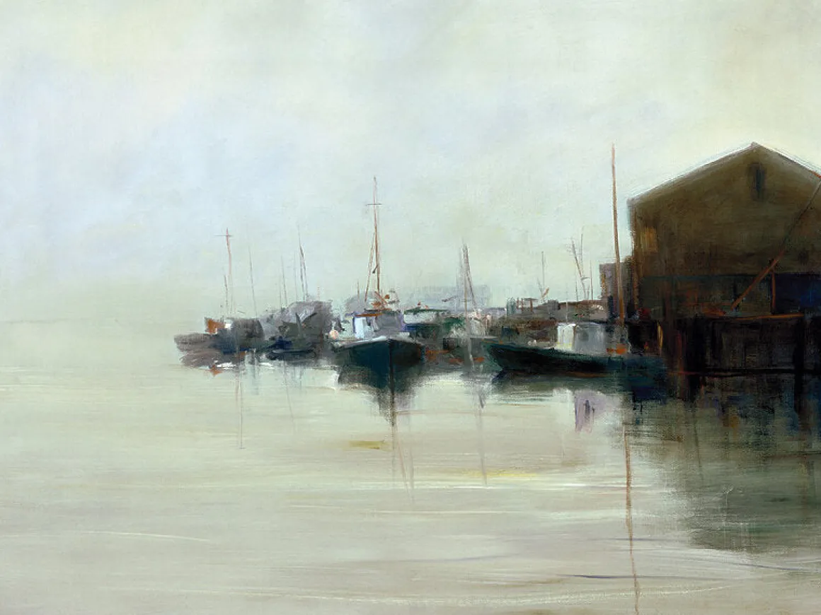 Now for sale online at Dolphin Galleries! The Wharf.This painting by Anne Packard is a Limited edition giclee on canvas. We ship this inside of tube after purchase.